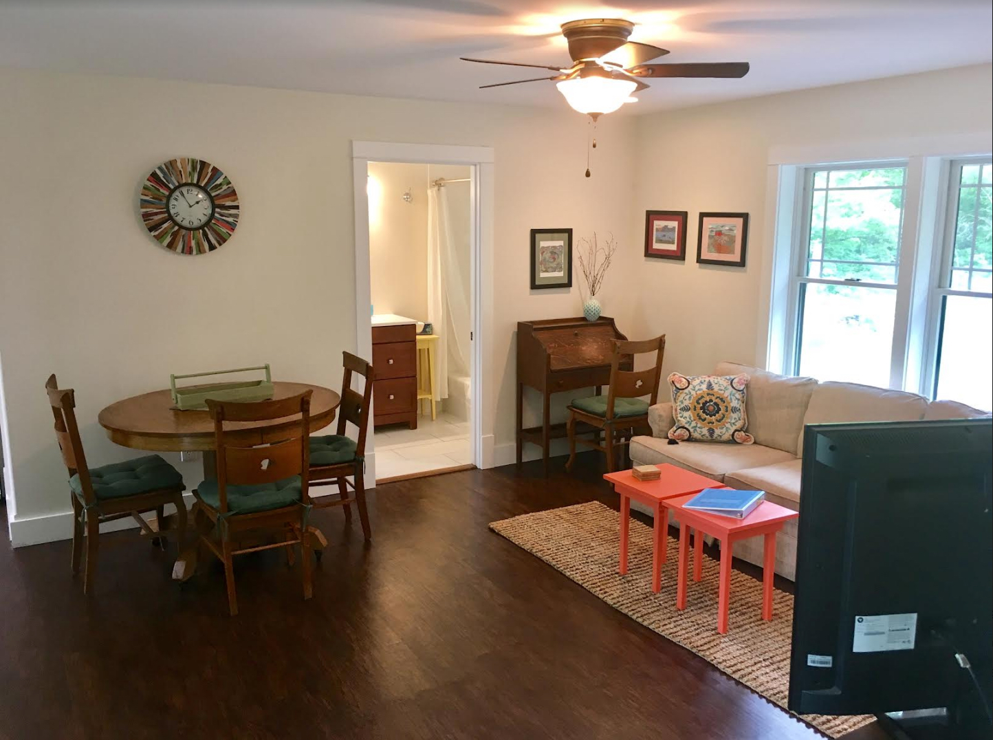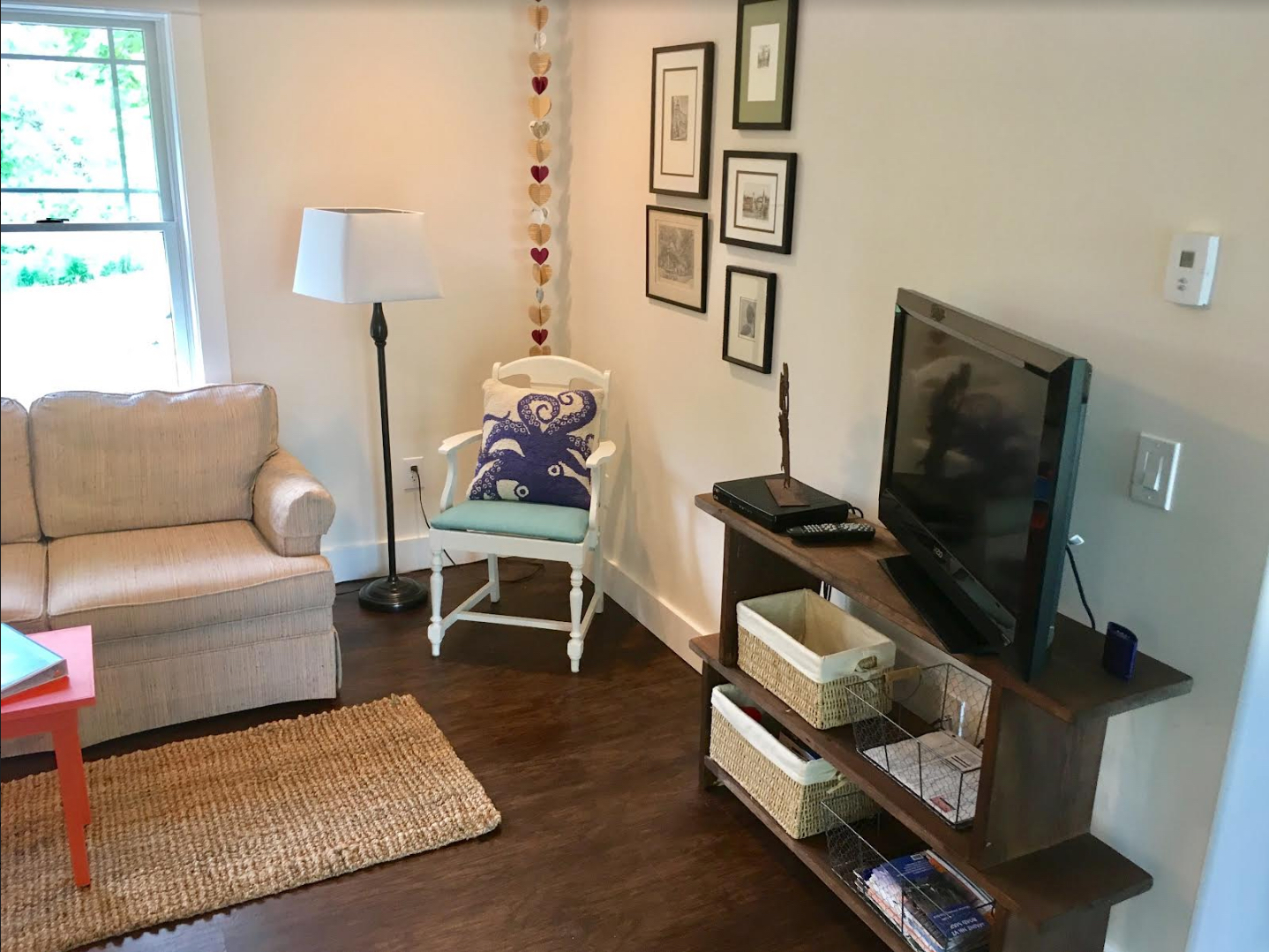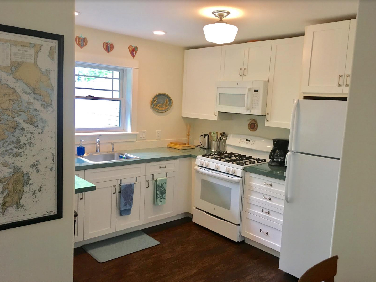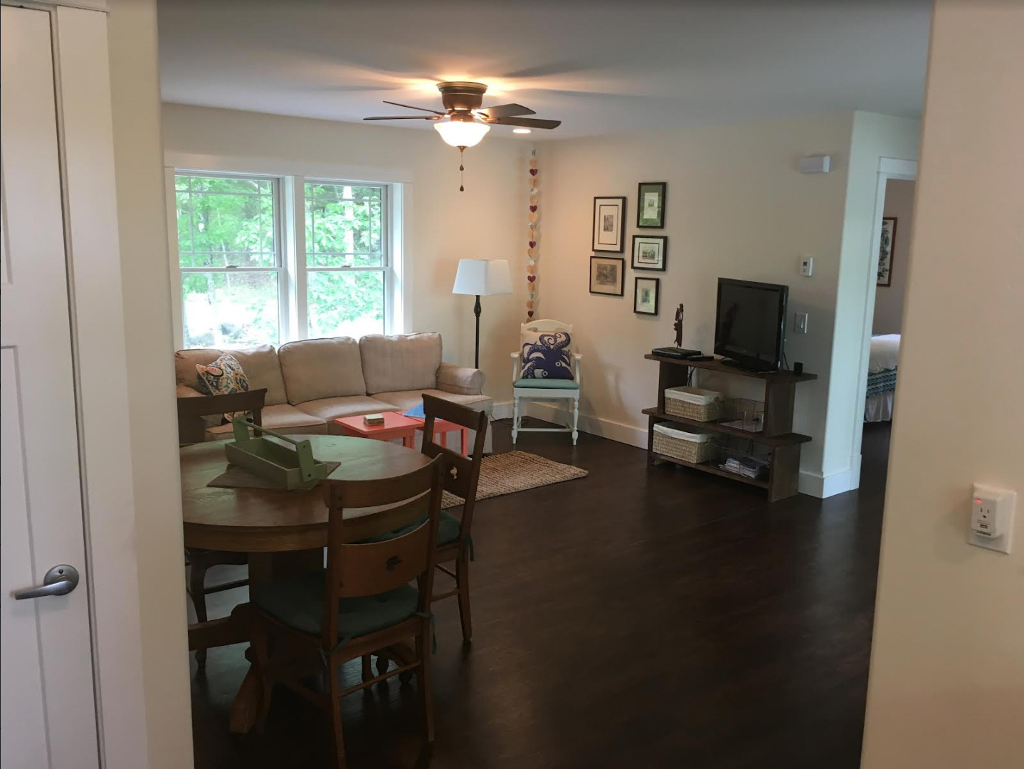 All utilities, including snow plowing are included. The apartment is equipped with in-floor radiant heat and on-demand hot water. Additionally, the apartment is covered by a full house automatic generator, a smart TV and high-speed Wi-Fi internet. There are two parking spaces for your exclusive use, a private entry, and your own laundry. The living area is an open concept kitchen and living room/dining area. All dishes, utensils, pots & pans and linens are provided. Lastly, there is seating on the deck which is covered that provides shelter during inclement weather that includs a propane BBQ grill. See photos below.